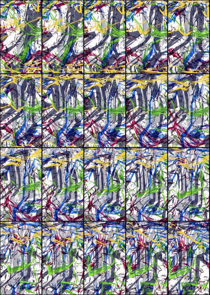 A more noise driven approach to animation, rather than the staccato of my other work. Not quite generative and within a real-time playground, but harking back to sketchbooks and earlier pieces of street artists in the early 2000s. Applying Kadinsky’s principles that shapes and lines can be pleasing to view, but in a more fractured avant-garde aesthetic. It’s a playground for meditative approaches to the hard edged and cutting commentary associated with graffiti and street art. A canvas to be explored as decoration and happy chance of fractured shapes, colours and light effects and a reaction to the often interactive digital art now shown and projected in immersive spaces and the social media feed of software driven processes, often involving particles, glitches or some trend of software opened up with advances in GPU or software accessibility.